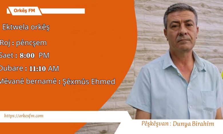 Bernama Ektwela Orkêş mijar li ser Rewşa koçberan û hazirkirina vegera komeke bi ewle. Mêvanê bernameyê :Serokê boroya kar û barên koçberan ya rêveberiya xweser. Şêxmûs Ehmed.