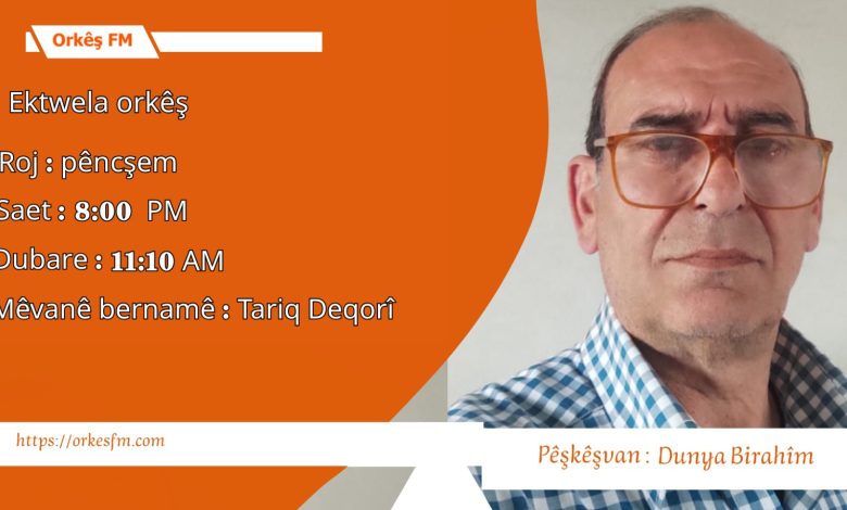 Bernama Ektwela Orkêş mijar Li ser Guhertinên li Rojhilata Navîn û Yekrêziya Kurdî. Mêvanê bernameyê: Hevserokê PYDê ya Amûdê Tariq Deqorî.