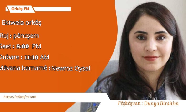 Bernama Ektwela Orkêş mijar li ser mafê hêviyê. Mêvana bernameyê. Parlementera Dem partî Newroz oysal.