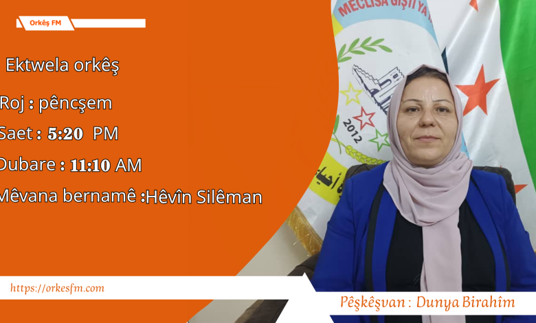 Bernama Ektwela Orkêş mijar li ser Sînaryoyên li sûriyê tê kirin. Pêşkêşvana bernameyê :Dunya Birahîm. Mêvanê Bernameyê : Rojnemevan Hesen Omar.