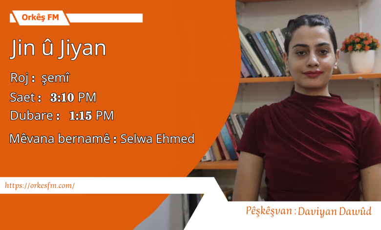 Bernameya Jin û Jiyan li ser di jinolojiya de Evîn . Mêvana bernameyê: Melîha Ebdullah Rêvebera Akadimiya Perwerdê û lêkolînên Stratîjîk.